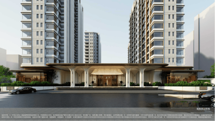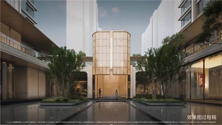 建筑与美学:融贯东方审美与现代简约的立面美学,立面采用精致铝线条(局部涂料)与现代质感玻璃打造,勾勒优雅轻盈的城市封面
