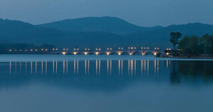 优雅的建筑群落,宛如一颗颗宝石,散落在湖山之间难得的宽度约200-1000米的坡地上。