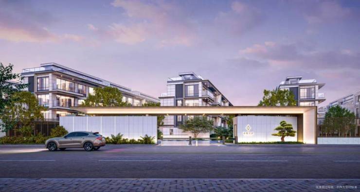 现代立面四水归堂寓意美好!以斜切45°香槟色木纹铝板与银色金属线条搭配透明玻璃,营造现代时尚的立面风格;宽近32m恢宏大门,以威仪姿态礼遇归家享受;并遵循“四水归堂”的造园理念,臻筑美学园林大境,精巧布局一大中心花园、一条景观轴线、多重院落;更以三重归家礼序,营造酒店式归家场景,予生活尊崇仪式感。