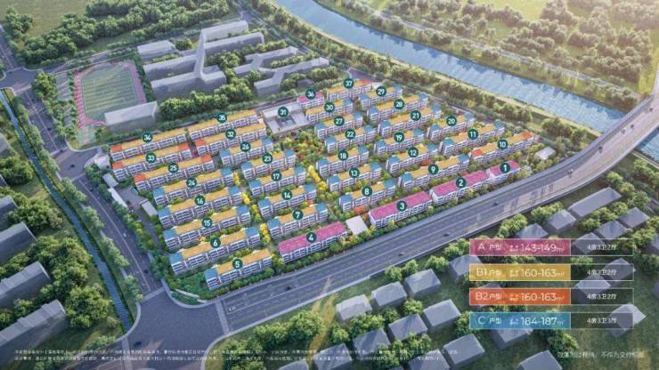 【户型规划】A户型 建面约142-148㎡/B户型 建面约158-163㎡/C户型 建面约182-186㎡叠院