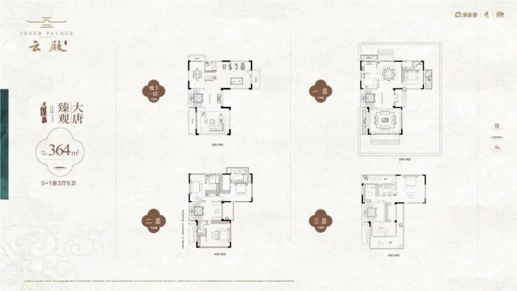 6栋双拼别墅(建面约364㎡)、22栋联排别墅(建面约197-230㎡)和6栋8-11层洋房(建面约105-226㎡)。