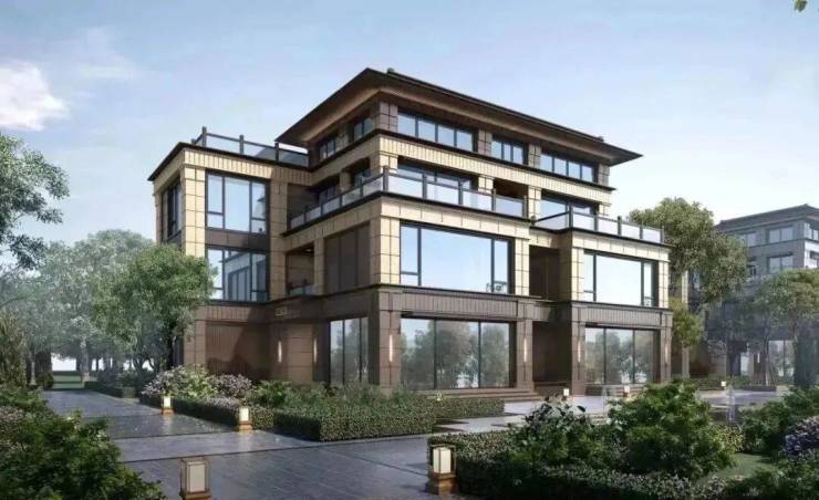 项目别墅外立面采用进口英国棕、芭蕉黄石材+铝板设计,建筑整体更具尊崇感。