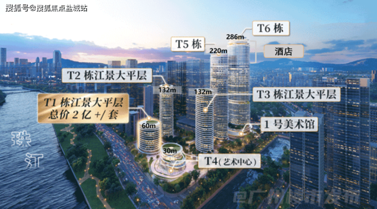 整个项目占地5.42万方,规划6栋建筑,包括3栋公寓大平层,2栋220-286米商业大楼,1栋30米艺术中心,还配有美术馆及酒店等,规划确实不错。