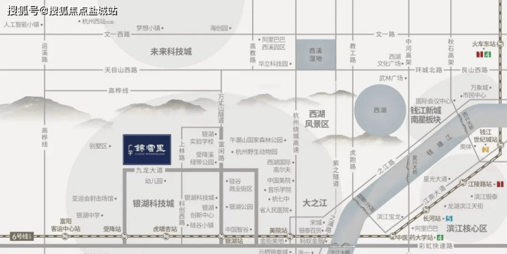 2.交通配套公共交通:项目距杭州地铁6号线虎啸杏站约1.8km,5站速达之江核心区——中国美术学院象山校区,直通滨江、奥体、钱江新城等