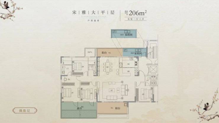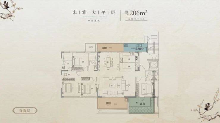 建面约206㎡大平层(5房2厅3卫)