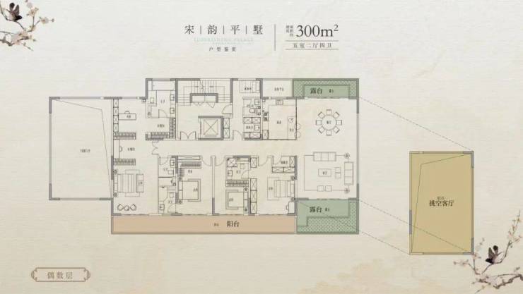 建面约300㎡大平层(5房2厅4卫)