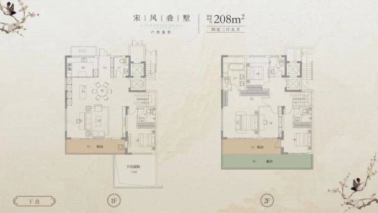 建面约208㎡下叠(4套房2厅5卫)