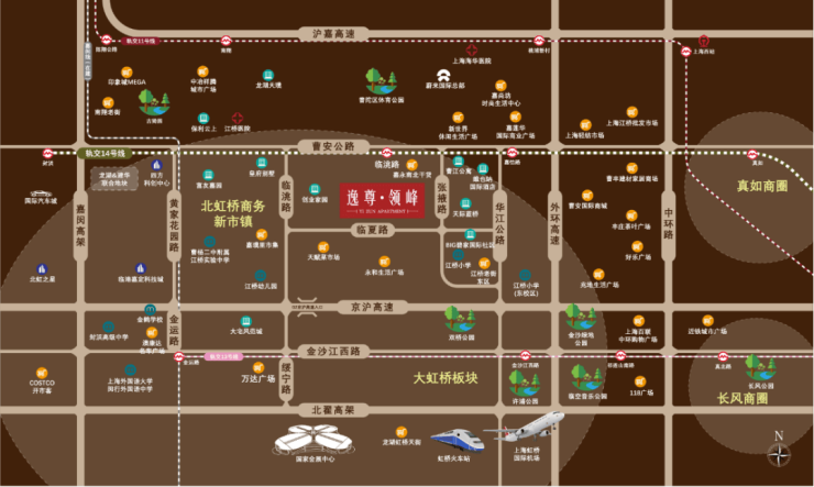 交通方面,紧邻14号线临洮路站、13号线金沙江西路站、嘉闵线(在建中)。北接曹安公路,南至京沪高速,西接嘉闵高架,东临外环高速,距离虹桥枢纽约8公里,交通四通八达,畅通无阻。
