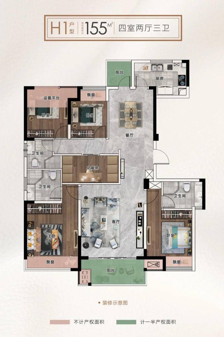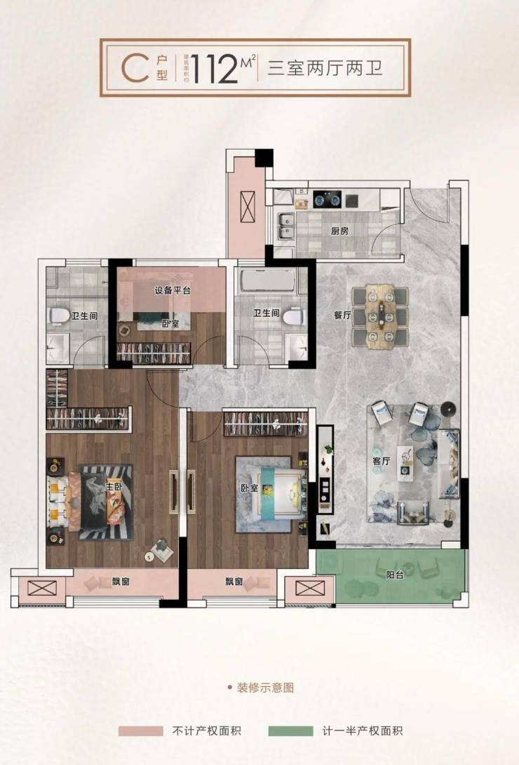 产品面积:约112-155㎡景观楼尊