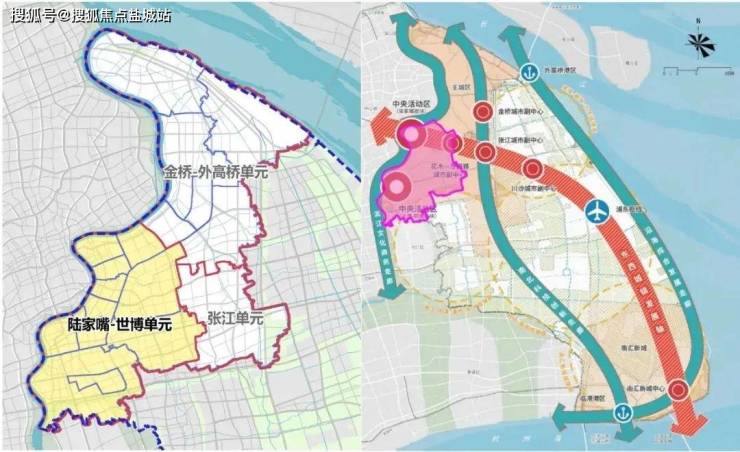 陆家嘴-世博单元包括陆家嘴和世博-前滩,这两块属于上海的中央活动区,还包括花木-龙阳路城市副中心,以及洋泾、北蔡、三林等热点地区。