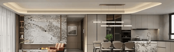 约38米宽酒店式归家大堂,以干挂石材与环形灯带勾勒仪式感。每一次归来,都是一场身份的加冕。