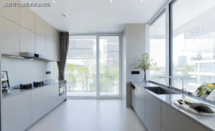 把厨房也做成全玻璃视野,看着窗外的风景,制作美食的心情也愉悦起来了。