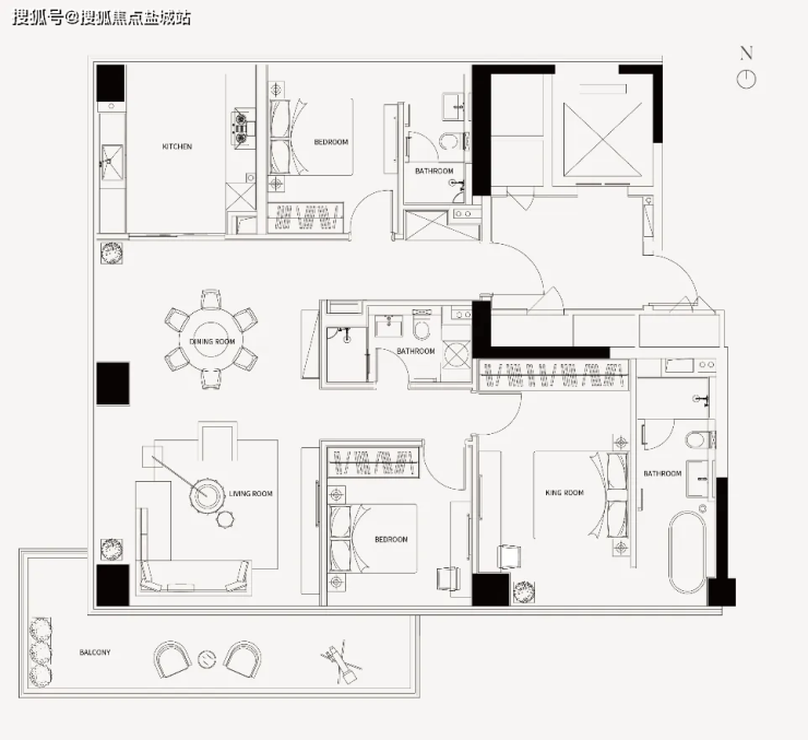 南向的三开间设计让阳光洒满整个客厅,270°的观景阳台则提供了俯瞰城市的绝佳视角;