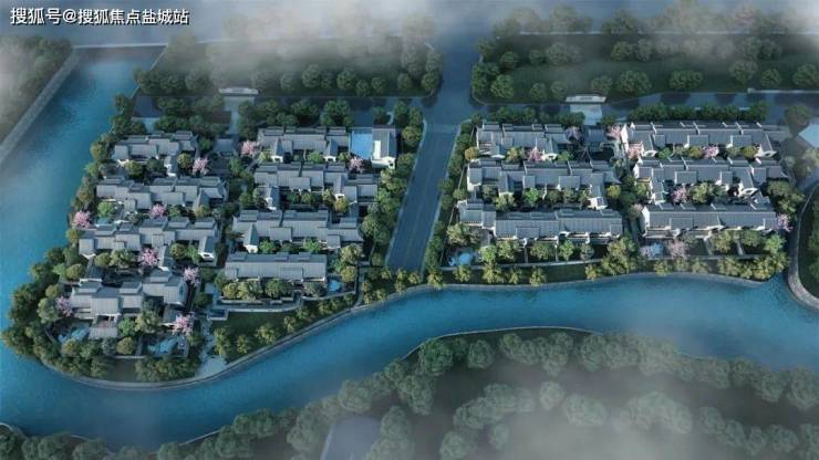 即使体量不大,众安仍然将整盘做到了极致。整盘背山面水,东西南三面临水,北面绿化带设置堆坡,种满高大的四季乔木,营造山体的效果。