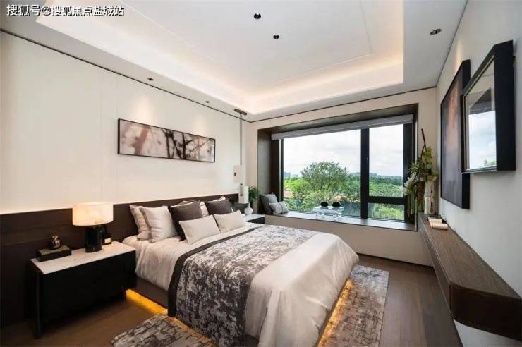 “大窗户”,在南向主卧里,拥有270°环幕瞰景玻璃窗,飘窗实现功能化,可以设置为观景台、品茶区,拥有超广角观景体验。醒来的第一眼,看到的可能就是对面那颗冬青树上的小鸟飞舞,真正诠释坐看窗边云卷云舒,闲看庭前花开花落。