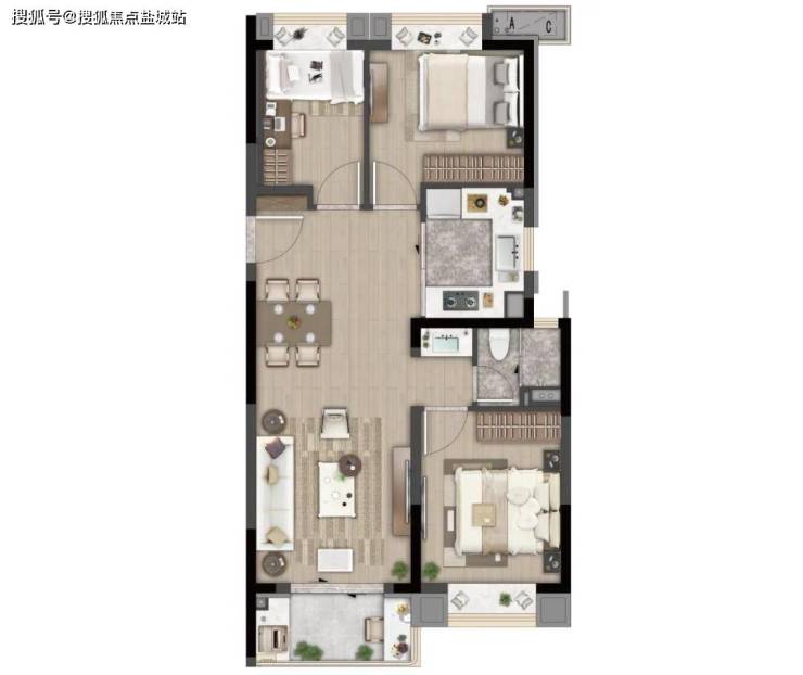C户型 建面约88㎡ 三室两厅一卫