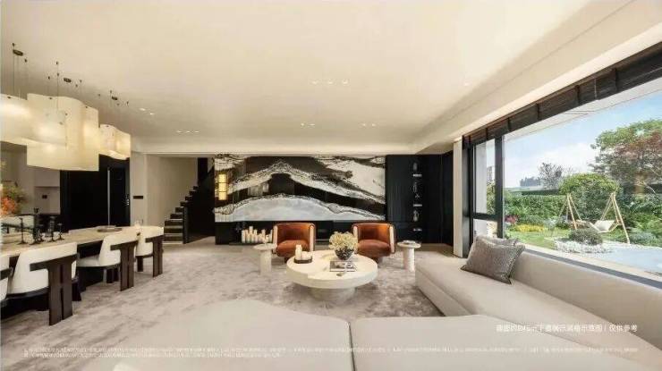 项目的叠墅立面,有着艺术品般的质感。以美拉德暖色调为基调,搭配“艺术级流体无界屏”设计,凸显流线型“游艇立面”建筑美学。大面积铝板与玻璃的流动线条模糊了建筑与自然的边界,让建筑仿佛生长在大自然一般,诗意揉融,无限契合。