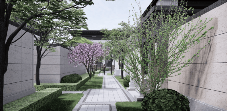 项目采用院厅融合设计,将下沉式院落焕新为地上庭院,扩大院子面积,为客厅的延伸与衔接留下更多想象空间。十大专利营造工法,“师古而不宁古”,赤诚匠心,留驻中国人心中的院子!每一条优雅戗角,每一块石材雕砌,每一处片瓦的交叠衔接,皆如落笔于古人诗词画境中的院落。悠隐于庭院、养于园林 「一轴五街八园十二巷」规划手笔,传承儒家礼序、融情江南山水,以现代造园手法,演绎东方传统园林的空间转化和进退有度。