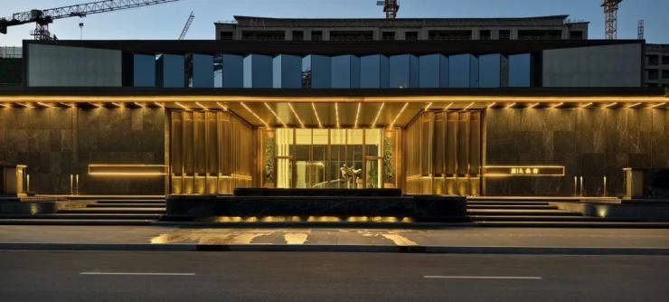 但有一点,入户单元大堂和电梯等空间,都做了符合“老钱风”的奢华装修。比如,单元门使用灰色石材、绿色奢石和金属铝板,电梯内也做了装修。