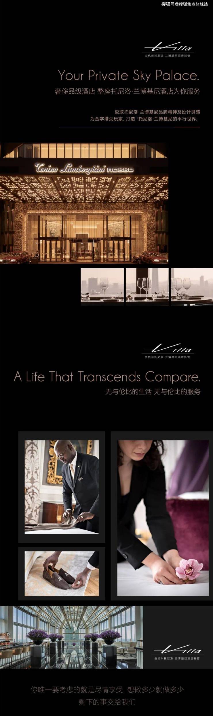 杭州之门后,奥体落成的海拔第二高双塔(约250米),外号“小杭州之门”。瑰郦中心L-VILLA位于T2塔楼,12层的裙楼就是托尼洛·兰博基尼酒店。