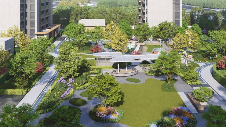 社区整体规划“两环两轴一心七园”,打造约12500㎡园区花园,下楼即享全龄生活场域,构建可生长的全龄友好乐园: