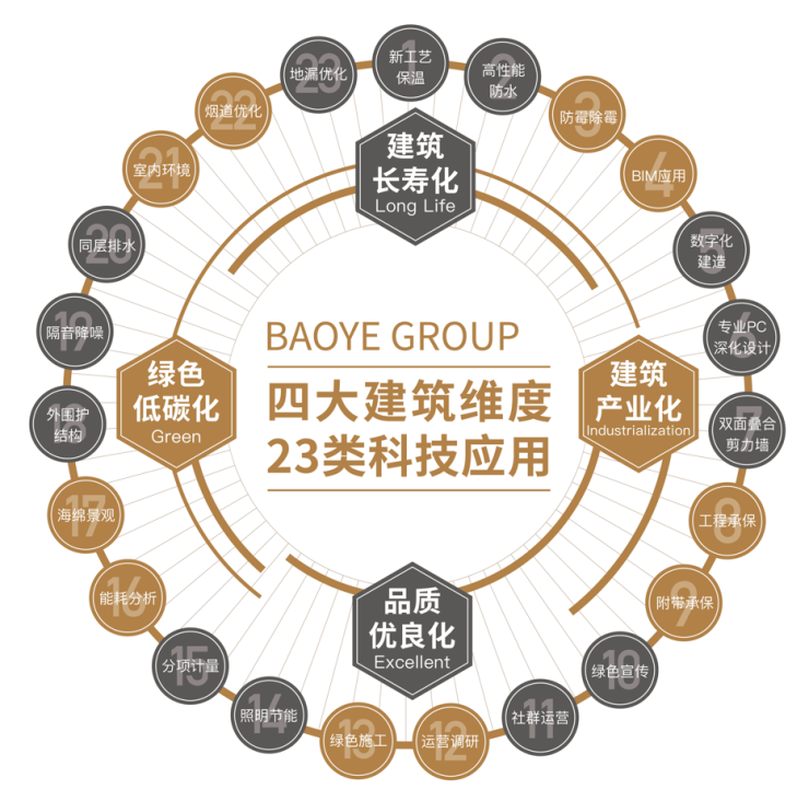 宝业集团:近50载大国工匠,港交所上市集团,财富中国500强,拥有9大建筑实验室、4大研发中心、35个建筑科技产业园,荣获41项中国建筑最高奖鲁班奖、48项国优奖等多重奖项,采用德国工业4.0智能智造生产线,开发集成高品质、工业化建筑约5000万方,覆盖绿色、健康、智慧各类建筑。