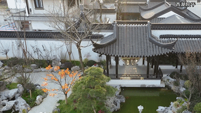 粉墙黛瓦,飞檐花窗,花街铺地,假山叠石……一走进西湖院子,浓浓的中式大宅韵味便扑面而来。优雅别致的观景亭,精致逸趣的美人靠,行走在西湖院子之中,仿佛穿越到了古代的江南,四处都弥漫着纯真而华贵的气息。