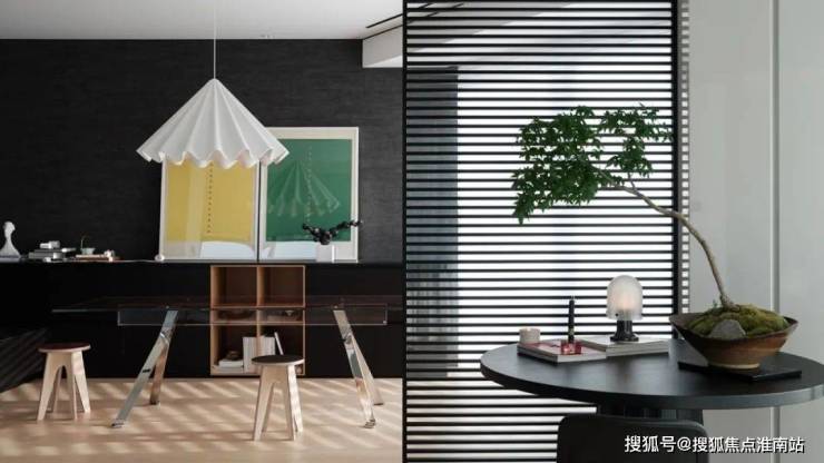方案三易其稿,410平米的空间最终敲定的平面里只保留了两个卧室,但他们并没有把大量的空间留个客厅,而是将其均衡地分配给厨房、餐厅、茶室、卧室等生活的功能空间以及储物的空间。