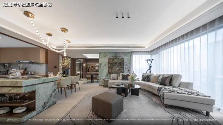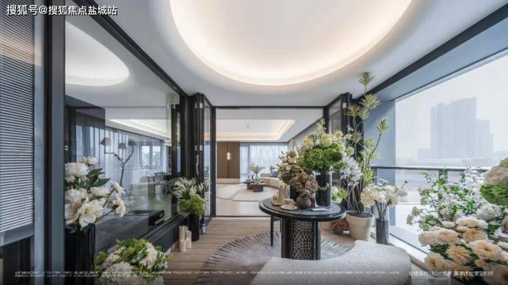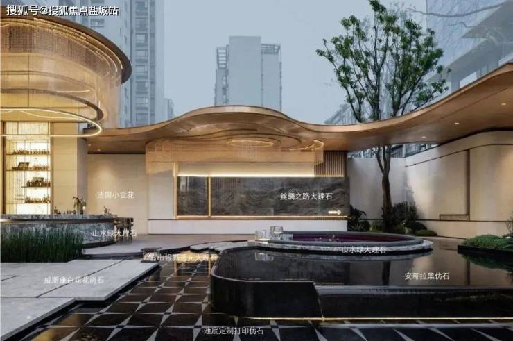 为了消解中庭景观与建筑的界限,泛会所临中庭一侧采用通高玻璃设计,并且玻璃可开合,达到内外无界交融的效果。畅游其间,感受到的是愉悦的“无边界”感受,风格连贯、功能连贯、视野连贯,中庭成为了建筑的自然延伸,完全没有小地块的束缚感,社区变成了一个巨大的开放型空间。水院采用花砖拼贴,黑白交织宛如盛开的花朵 院落间红与黑的碰撞,奢华与静谧交织,这场关于时尚的盛会永不落幕。
