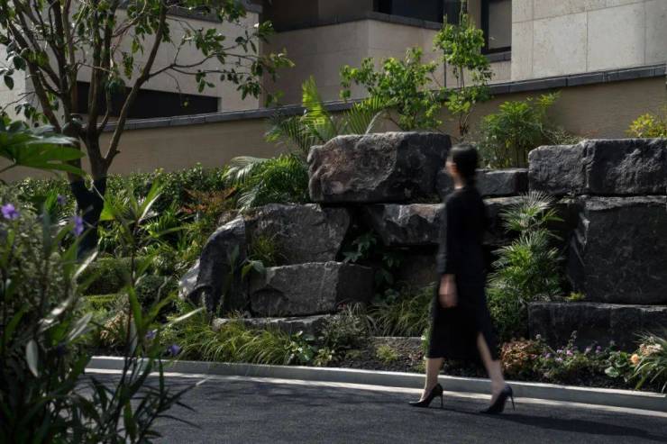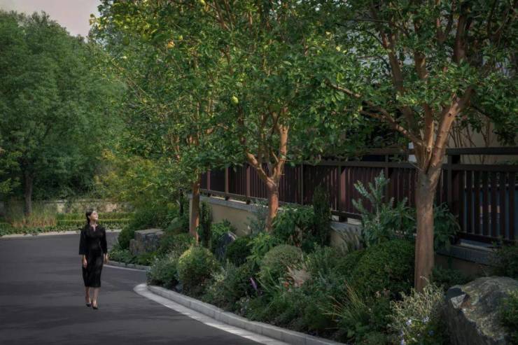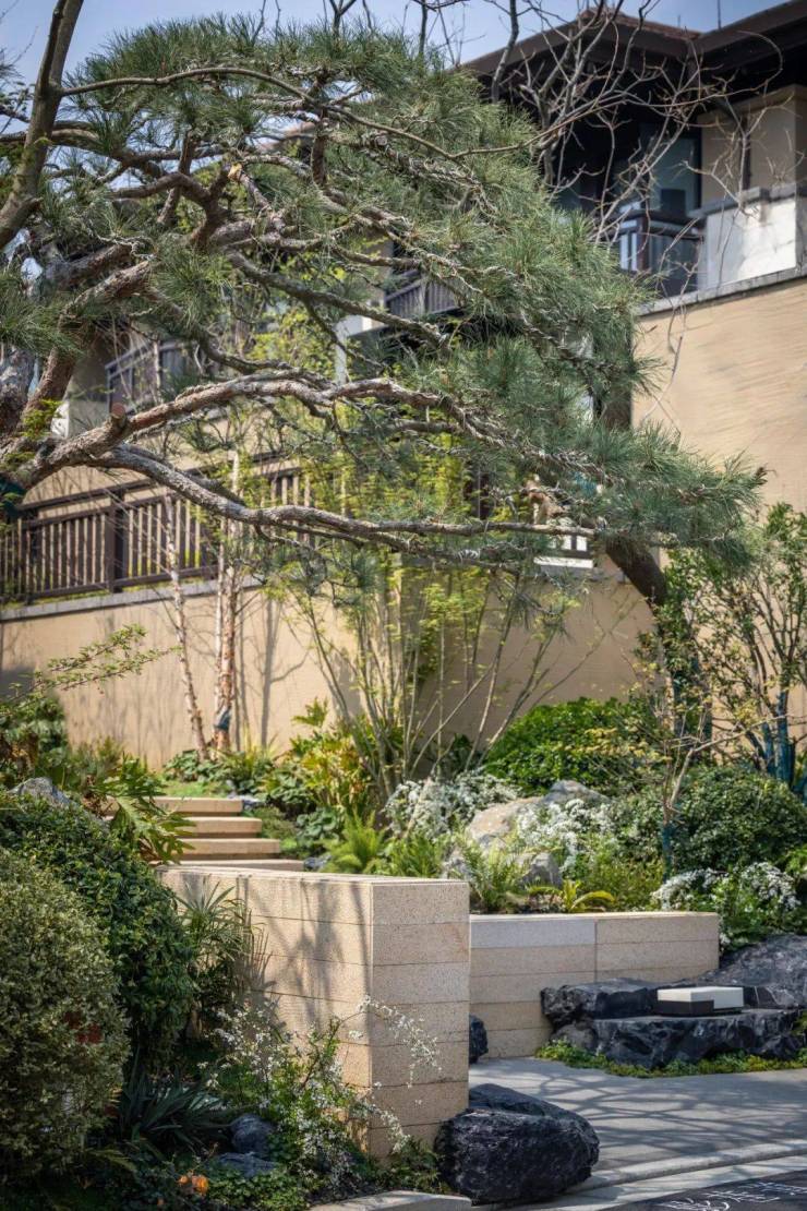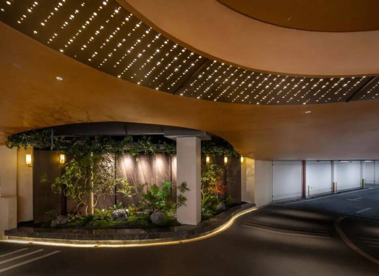 在巷道设计中融入日式庭院灵感,另外车库入口采用“枯山水”意向,精准控制颗粒密度与光影反射,实现日式砾石禅庭的完美复刻。