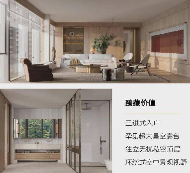 底层拥有超过360平方米的庭院艺术区,使您能够与自然亲密无间;而顶层则设有空中四合院的艺术空间,您可以在星光灿烂的夜空下享受浪漫晚餐, 或在露天阳台上悠然观赏皎洁明月,体验与自然和谐共存的宁静与美妙。