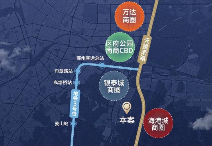 本案所在天童南路,鄞州区城市南北中轴,串联鄞州四大核心商圈,集萃一城澎湃资源。