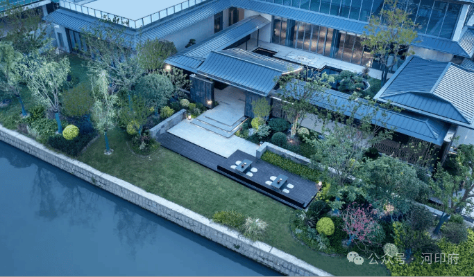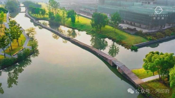 河印府北依浙东运河(官河),西临运河支流,形成双水岸环绕的半岛格局。这条拥有1700年历史的运河,不仅是萧山的“母亲河”,更是世界文化遗产的一部分。河印府借势稀缺景观资源,将宋代园林美学融入社区设计,打造“出则繁华、入则静谧”的隐贵生活场域。