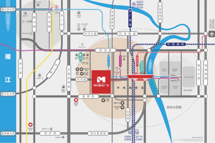 加上京广、沪昆两条高铁主动脉,美的置业广场坐拥全国交通枢纽,去哪都便捷。