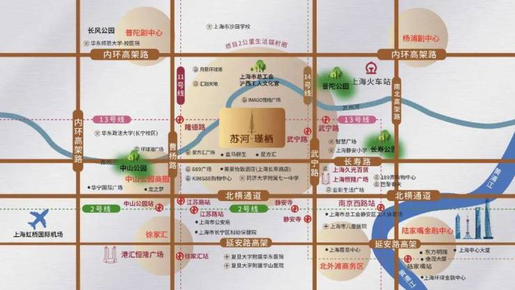 首先看一眼项目地段,就能感觉的出来,这个项目品质绝对不会太差,毕竟也在地标级的苏州河居住区。