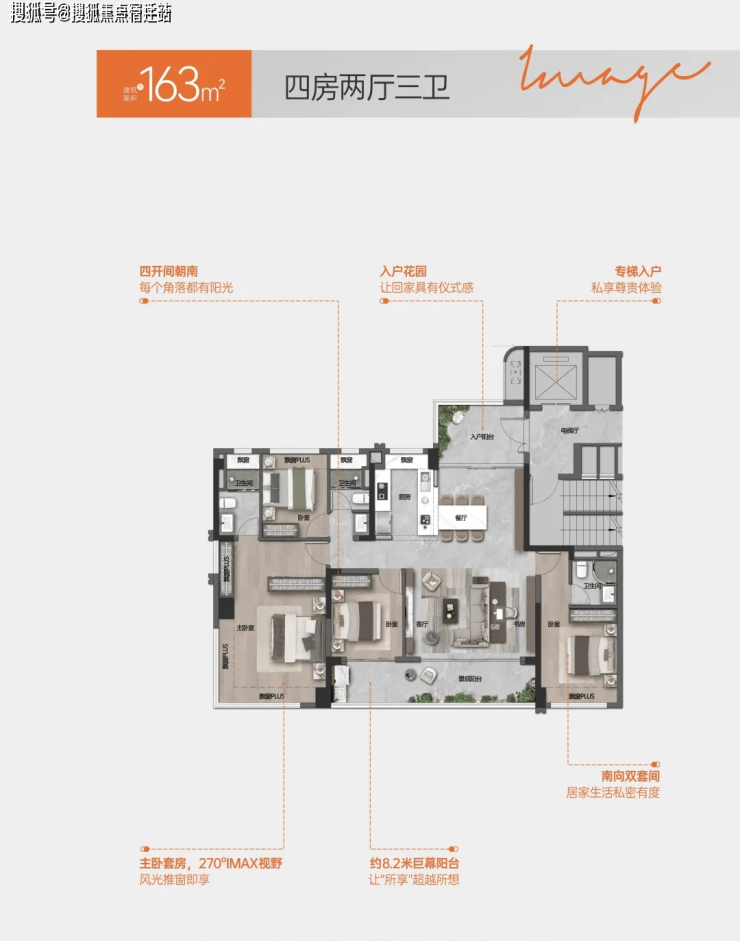 户型鉴赏119-163㎡纯南向巨幕四房
