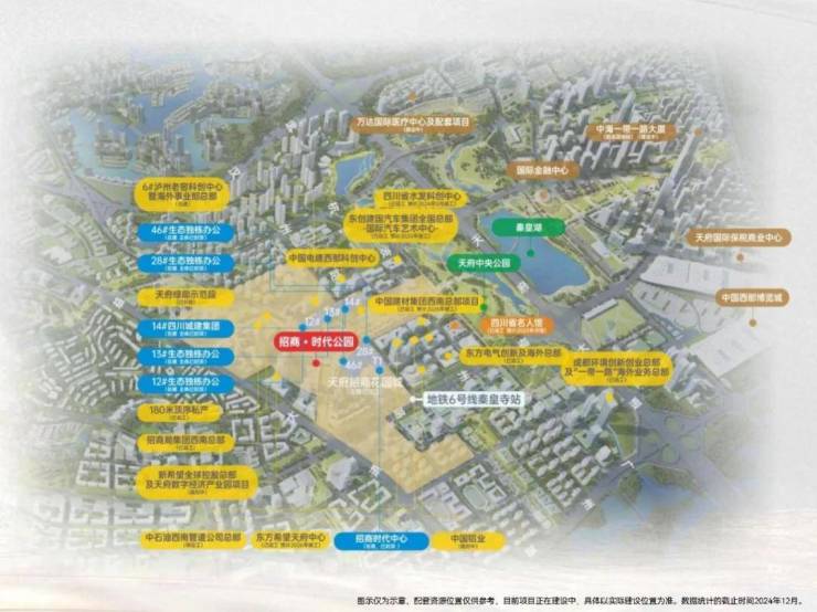 其中,天府中央商务区以公园城市为设计理念,总体设计约28.6平方公里,中央核心区范围约8.5平方公里。区域突出总部经济聚能和高端服务赋能,构建以总部经济为核心引领,形成多元产业体系,打造面向世界的中央商务区、成都未来城市新中心。招商时代公园,位于天府中央商务区中心区域。