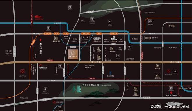 『西溪创智中心位于未来科技城的核心区域,紧邻文一西路城市中轴,地理位置优越,交通便捷。项目距离阿里巴巴全球总部仅约3公里,与未来科技城、主城区无缝衔接,为企业提供了便利的商务交流条件。』