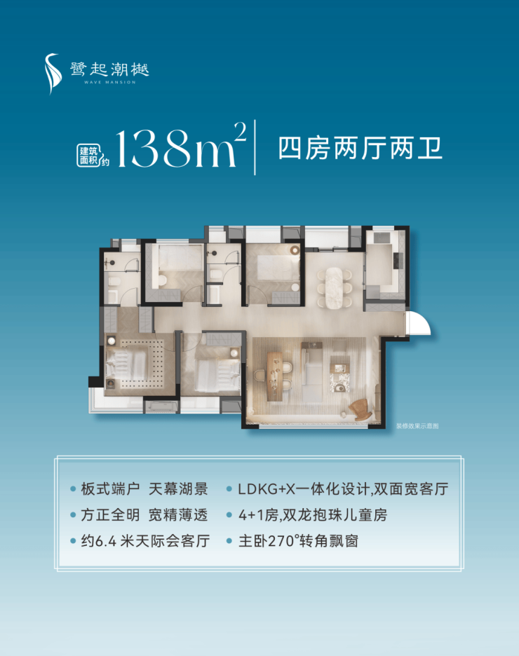 鹭起潮樾的“质价比”哲学,在于一份总价所能兑换的生活容量与体验维度。鹭起潮樾深谙首置青年对于“空间与价值”的双重渴求,我们提供的不是压缩标准的将就,而是在同等预算内,一次对空间、功能与视野的越级占有。更重要的是,我们将一线湾湖的稀缺景观作为空间的“天然奢装”,透过大尺度窗户与阳台,将其慷慨地融入日常。
