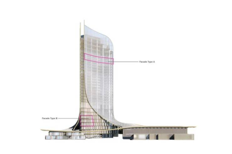 该项目由四座高140米的塔楼组成,综合体的独特张力通过酒店塔楼立面上标志性的巨型玻璃天幕彰显,加强了创造开放姿态的建筑设计理念。