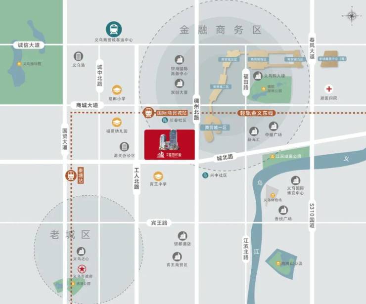 ▪︎多维交通:近揽国贸大道、城北路、稠州北路、商城大道等城市主干道,轻松畅达全城;距金义东轻轨“国际商贸城站”、“秦塘站”仅约700米,城际出行高效便捷。