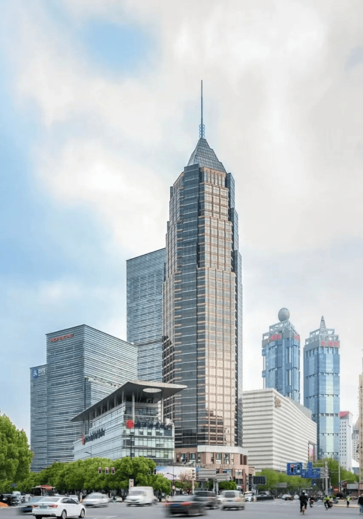 世界广场由美国著名建筑事务所 LANGDO WILSON ARCHITECTURE PLANNING规划设计,外立面采用咖啡色为主色调,整体造型似宝塔状,庄重而不失现代感。与美国纽约的帝国大厦一样超群绝伦,庄重典雅。