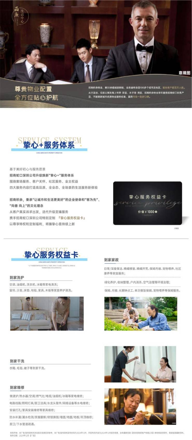 “招商积余”超36年服务经验,中国物业服务企业综合实力500强前3名;项目选用与海上世界·双玺,太子湾·湾玺等社区相同的物业公司。