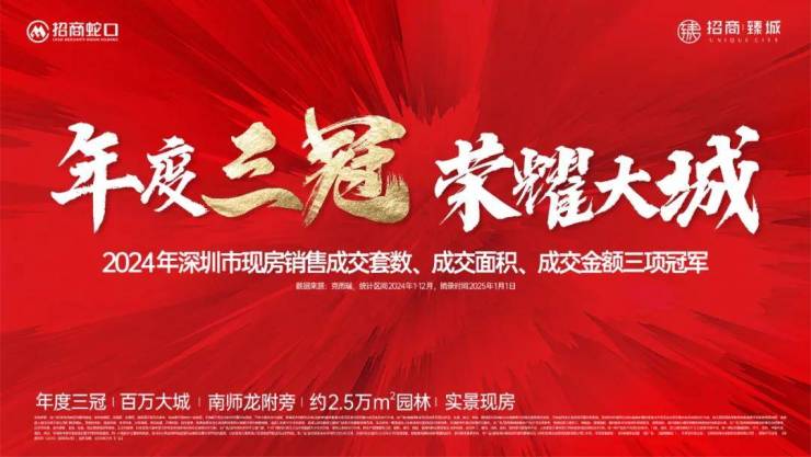 项目荣获2024年深圳市现房销售成交套数、成交面积、成交金额三项冠军,百万大城之上,一期压轴之作,入主央企大城的机会,热势竞藏!