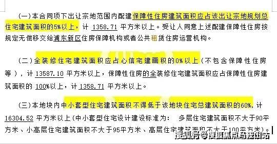 根据出让合同显示,项目还需配建5%以上的保障性住房,全装修比例50%,并要求中小套户型不得低于住宅总建筑面积的60%。