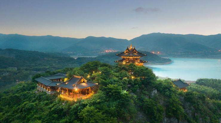 在小镇中心,白天看山赏水,欣赏小镇的秀丽风光,到了夜晚,山水之间亮起璀璨灯火,又是另一番动人美景。