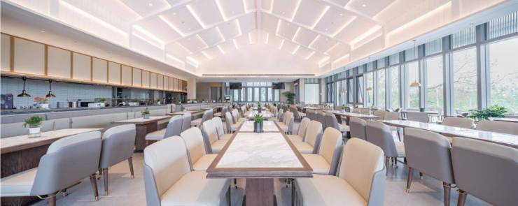 小镇食堂现代时尚的大厅、舒心清雅的包厢,宛如置身五星级酒店餐厅。