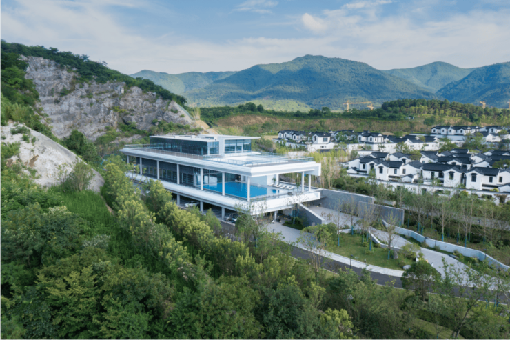 面朝阳羡湖,背靠矿坑崖壁,呈现独特的自然风貌,隐逸而静美。将后工业文明、自然地貌和小镇独特的艺术体验融合于一体。