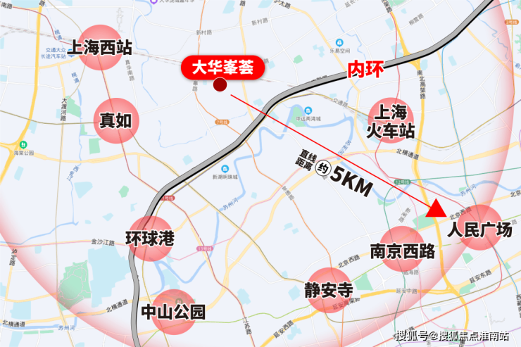 项目与内环高架直线距离约900米,直线距离约5公里内就有静安寺、人民广场、南京西路、环球港等商圈,一脚油门的时间,上海市区各大繁华商圈触手可及。