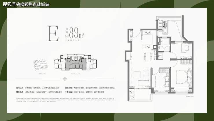1、全部南向大面宽设计,保证最为出众的采光和视野需求;